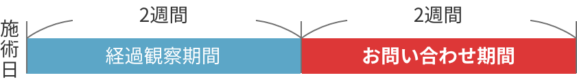 施術後、2週間経過しても毛が抜け落ちず不自然に残っている毛がある場合には、施術日から4週間以内にご連絡ください。期間内にご連絡をいただき、当院で照射漏れと判断した場合には、無料で再照射いたします。
