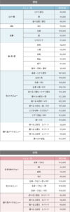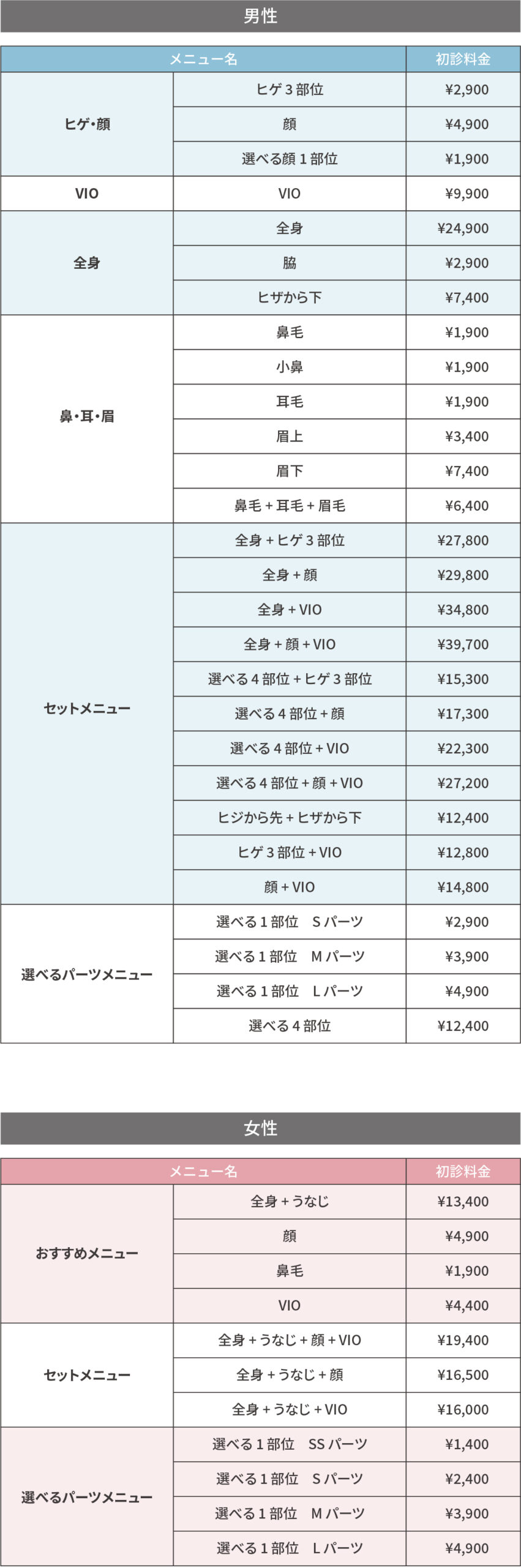 女性の料金メニュー